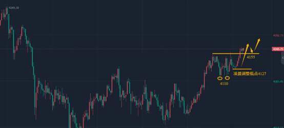 不出意料,黄金又是在4110低点做了W底上涨,盘面价格两次下探至4110附近回升之后,凌晨尾盘调整的低点在4127一线,那么今天的低点也在抬高,早盘低点在4129一线,所以接下来可以参考在4127/29支撑上做多,以此防守积极做多看涨,如果期待调整幅度大再去布局,短期就会由强转换到震荡,反而没必要再去布局,看涨的目标依次看4200,4250,站稳4200之后势必是继续多看多头延伸。具体操作参考黄金依托4127防守触及4140区域多,欧盘破位4170后回踩4155上方跟进多,目标看逼近4200关口附近。