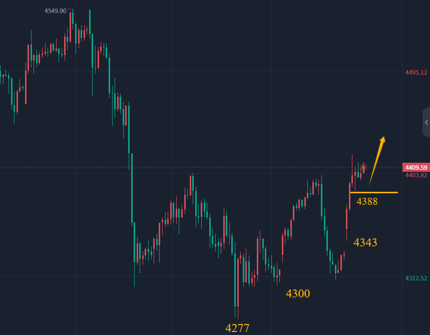 上周也多次强调了4404这个位置,周五也有提示这里不破短空一次,周评强调黄金破位4404后全力做多看涨,看多头站稳4400关口后进一步发力上攻,当前黄金已经破位了4404位置,这也就是意味着我们提示的黄金形成底部结构已经兑现,接下来若还有再次下探,还是继续上车的机会,黄金难大跌,每一次暴跌,都是买入机会,小回调那就小买。