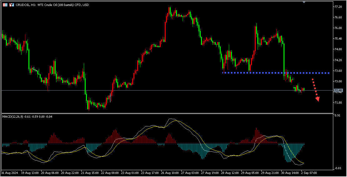 油价上周五大跌逾3%,回吐了上周四的全部涨幅,投资者评估OPEC+供应将从10月开始增加的预期,以及美国数据显示消费者支出强劲后9月大幅降息的希望减弱。今日原油短线关注上方1小时压力区域,调整承压后做空原油。