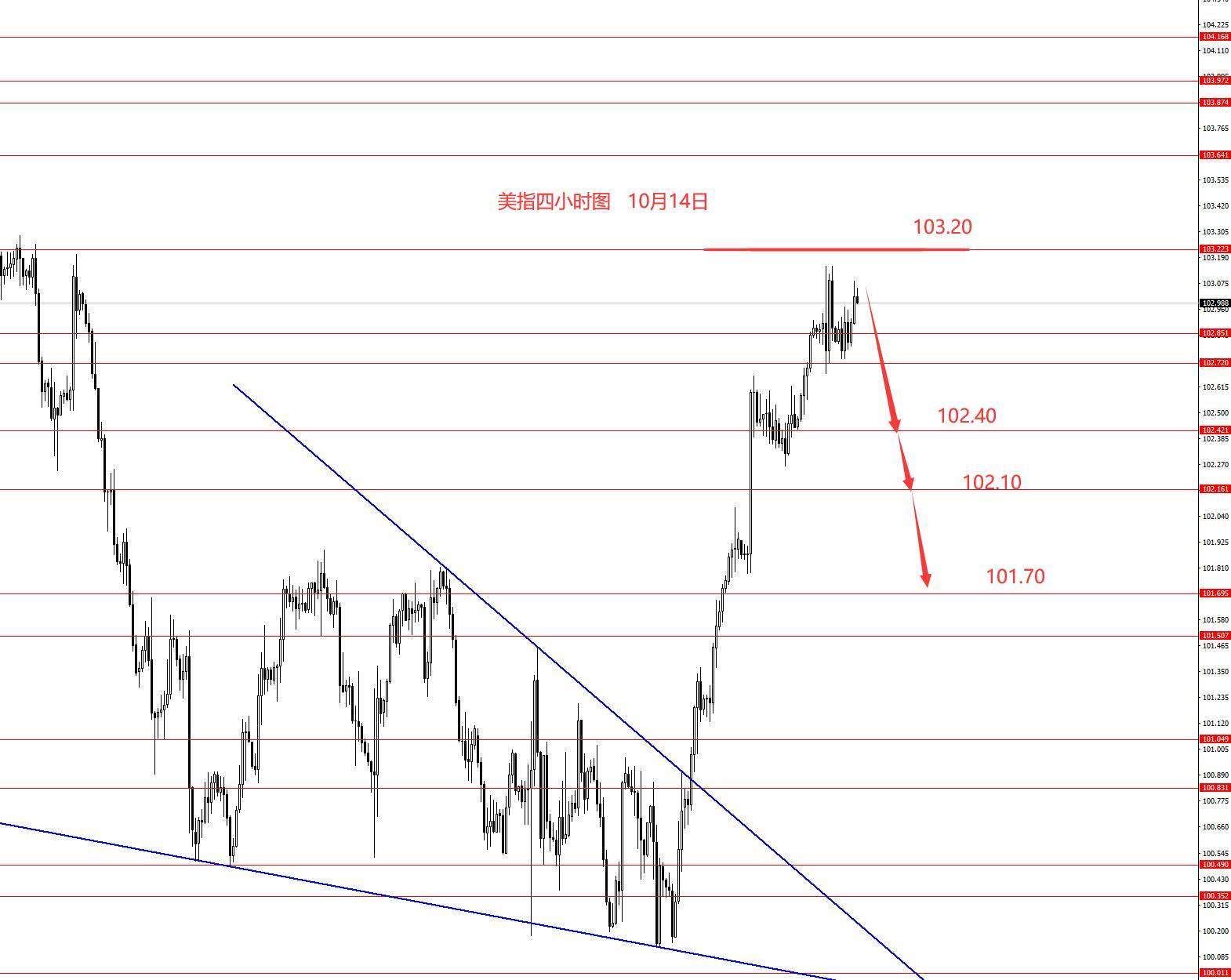 美指上周小幅拉涨创新高,最高103.15,103.20阻力基本到位,从100.10涨上来这波到位了,本周建议逢高做空美指,博向下修整波段行情。操作建议:103.00附近做空,止损103.35,目标看向102.40和102.10和101.70区域。控制仓量,严格止损。