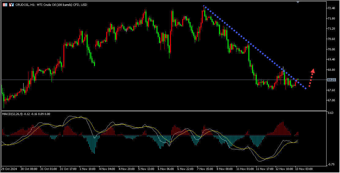 周三(11月13日)亚盘时段,美原油价格小幅震荡,交投于68.12美元/桶附近。尽管昨日油价有所反弹,但并未能完全反包此前的跌幅,市场情绪依然受到美元走强和原油供应过剩的担忧影响。投资者需密切关注美联储官员的讲话,以评估其对美元走势的潜在影响,这将直接施压油价。同时,EIA库存数据的变化也将成为市场关注的焦点。