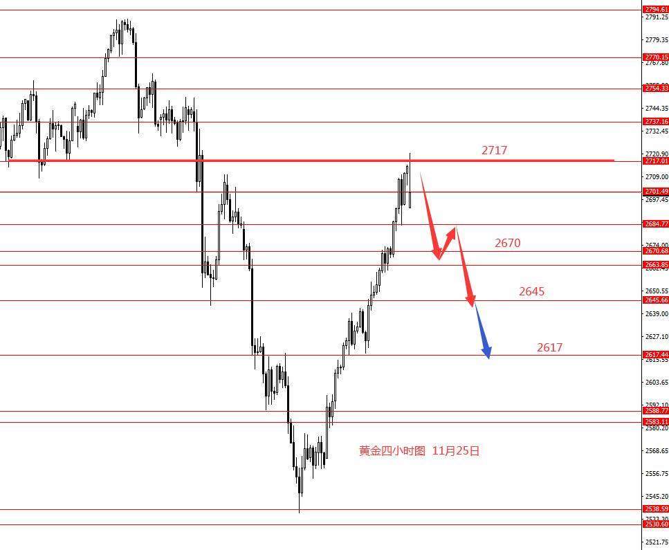 黄金上周正如预期向上反弹,且实际走势比我的分析预期还要大,目标位2663也已上破位,把上上周的跌幅全部收回。从图形来看,黄金本月回调加宽幅震荡,回调行情已完结,本周按宽幅震荡格局操作,周初关注早盘跳空低开高走的高点,其实还是关注周五的中阻力2717一线,激进者可短线做空,保守者观望。激进者操作建议:2710附近做空,止损2722,目标看向2670和2645,最低可看向2617区域。控制仓量严格止损。