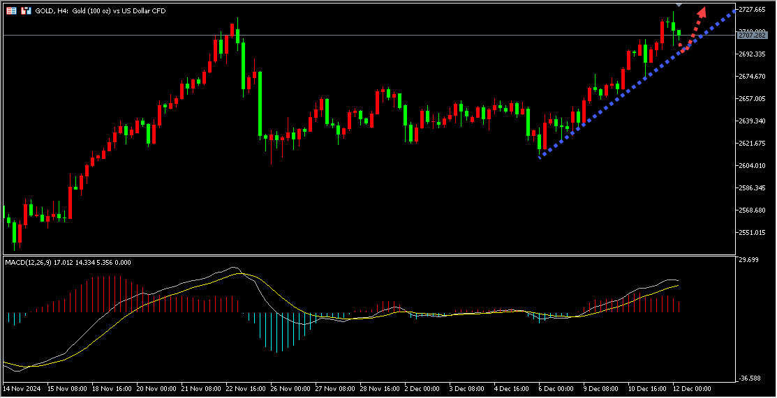 今日投资者关注下方4小时上升趋势线支撑2690区域,黄金价格回调企稳后做多黄金。