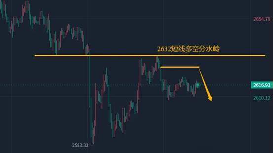 上方2632/36区域是一道难以逾越的关卡,这里作为前期的顶底转换压制区域,这里不破多头说破天它也涨不上去,所以明天依托2633为短线阻力布局空头,参考2626附近空,有效突破2633止损,下方继续关注2607及2600支撑,其实卡准位置短线多空都有机会,都有一定的利润空间,比如以2600为损靠近2607支撑位置多,或者最小止损能放在2607支撑点下方博多也是没毛病的,这个思路也有提及不需要多说,说多了就有马后炮的嫌疑了。