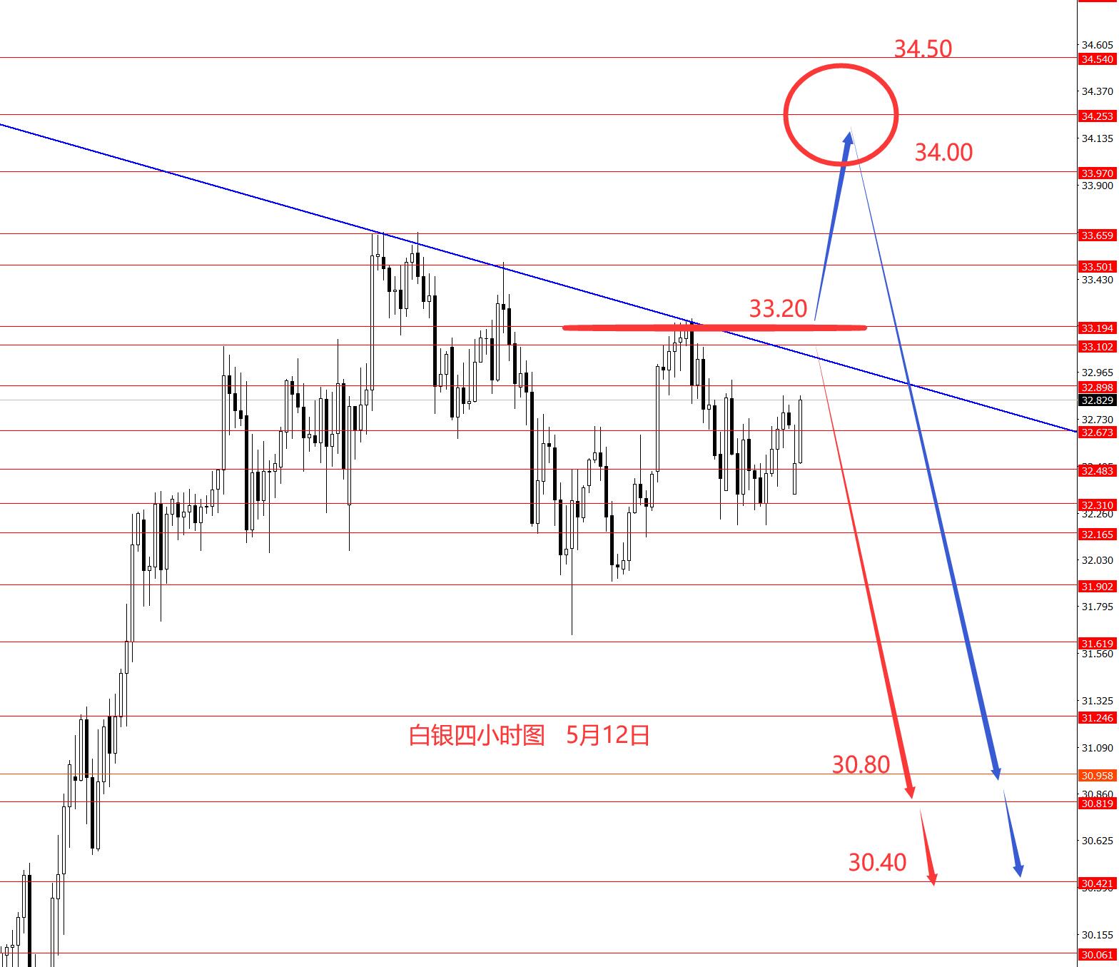 白银上周区间震荡,周图收阳柱。从图形来看,本周继续关注上方33.20强阻力区域,以下偏向于看空,若成功站稳33.20上方,再关注34和34.50强阻力区域,因为还是高位宽幅震荡,所以若上破33.20后,若34.50区域能给到还是得继续高空,上方重点关注30.80-30.40区域。今日先观望,什么时候能出明朗向下信号,什么时候再进场去做空。框架思路仅供参考风险自负。