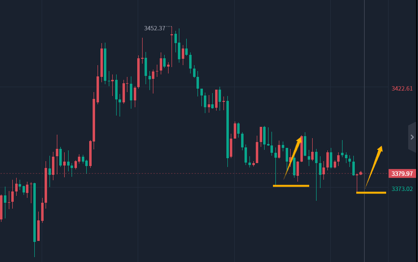 周一大阴回落后,昨日我们的定义为震荡,认为市场探底回升的可能较大,特别是早间出现急跌回升后,午后回落一定是先多,破早间的低点做止损,最终3381多单在3395上方离场。