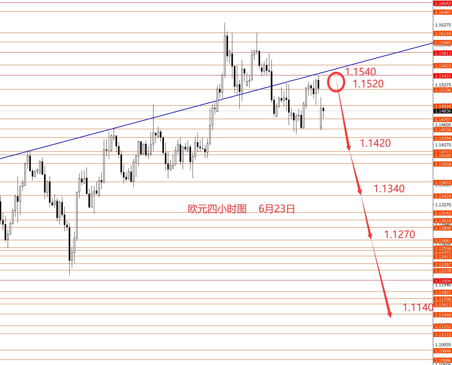 欧元上周正如预期先反弹再下跌,周五虽然向上反弹,但上方强阻力1.1540仍未上破。从图形来看,欧元呈震荡下行格局在运行,本周继续关注上方1.1540和1.1560一线强阻力,继续逢高做空。周一关注下方1.1450区域强支撑,在没成功跌破前,小幅区间震荡的概率较大些,震荡可区间小反弹后,再择机高空欧元。本周操作建议:1.1540-1.1520附近做空欧元,止损1.1595,目标看向1.1420和1.1340,再看向1.1270和1.1140区域。控制仓量,严格止损。