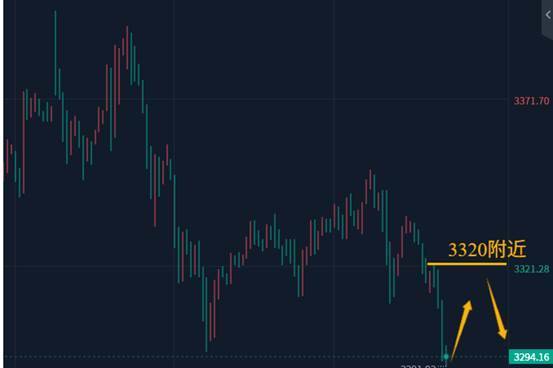昨日冲高回落,美盘虽有较大反弹,但是不连续,盘面价格反弹止步3336再次下挫,今日早间延续下跌破低,目前跌至3290关口附近整理,今天短线的走势是偏空的,但不宜直接追空,做空依然是反弹空,当前就关注3290关口得失,午后欧盘不一定能继续破位新低,可以尝试3290上短多抓取反弹后再空,跌破3290之后反弹再跟进空,避免直接追空。