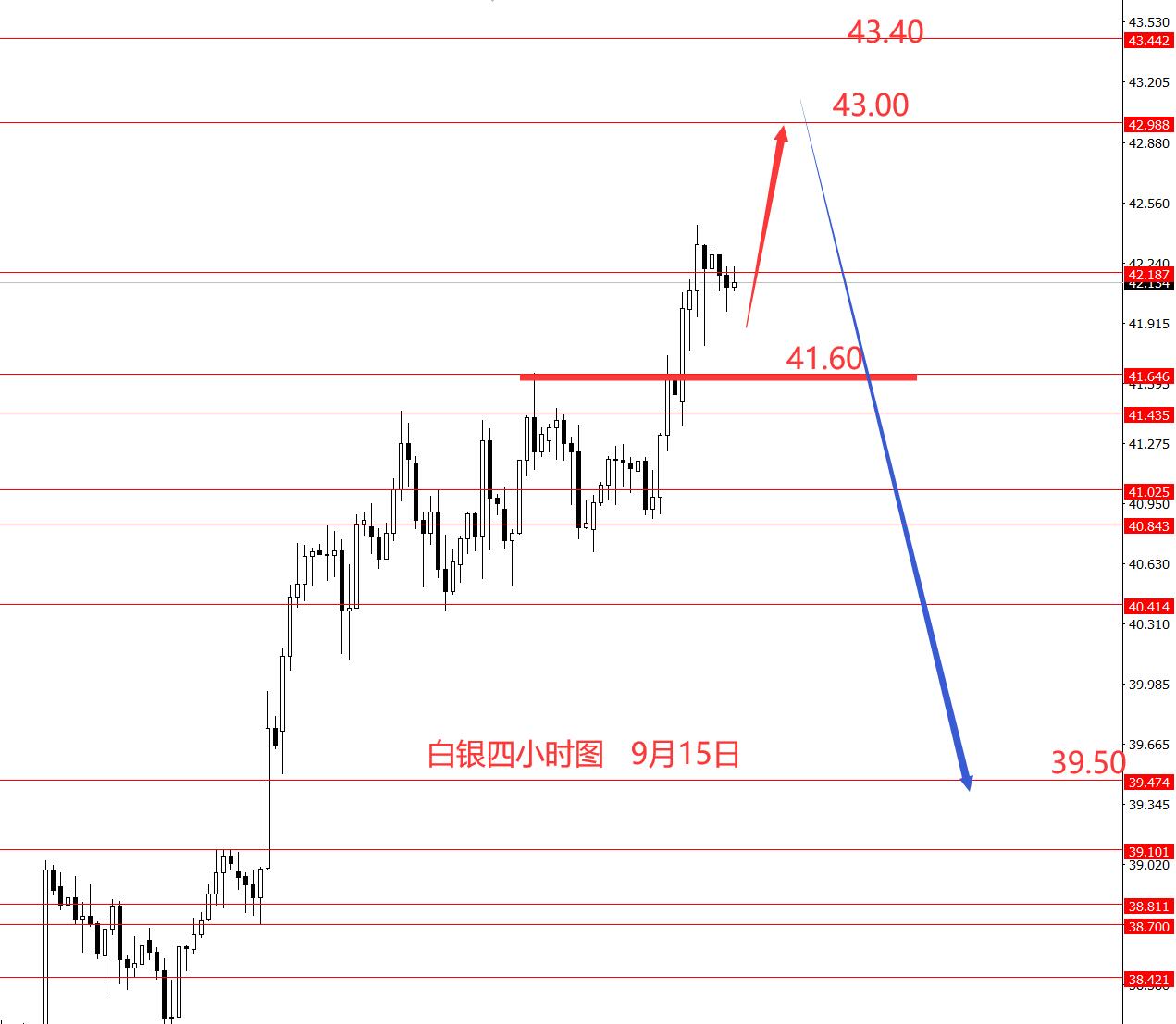白银上周继续拉涨,目标42.20也已到位。从图形来看,涨势仍在继续,本周初41.60以上继续看涨,上方目标43.00和43.40区域。创新高后留意反转回调行情出现,看图形白银已拉涨至极限区域,有大幅向下回调需求,但顶部形态一直没出现,且一直是看涨形态,所以留意这次美国利率决议前后的表现情况,是否会迎来向下回调行情。
