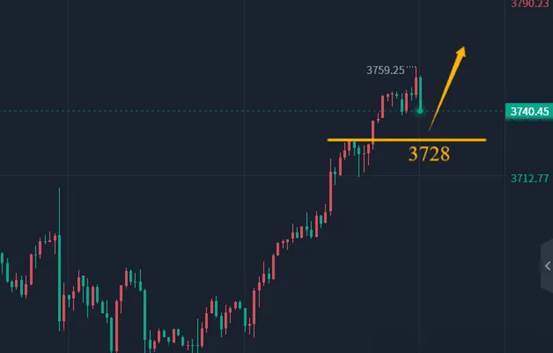 3707位置我强调了很多遍,关键位置突破之后多头势必会有延续,并且极易进入加速放量阶段,毕竟墙倒众人推么,回看前面几次高点,哪次不是破位后延续拉升,所以顺势原则最重要,黄金多头势不可挡,不断刷新历史高点,金价再次进入无人区,没有参考的位置,回调就是给到做多的机会,横盘蓄势是多,破高还是多。