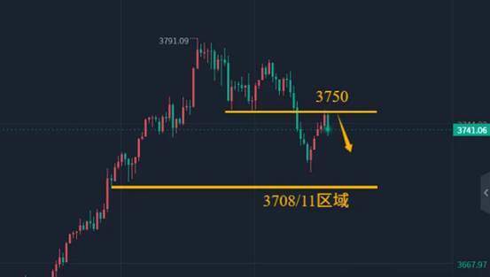 金价自3791高点回落,至凌晨低点3717,跌幅73美金,下跌一度逼近了前期的起涨点3711/08区域,再一次到达修正值的极限区,当前回升接近30美金,后市该怎么看,是多头修正还是趋势转折?结合黄金周二冲高回落、周三续跌收阴,形成清晰的调整节奏,虽说并未见顶,但是短线行情已经走弱,行情以调整看待。
