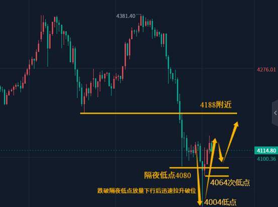 落实到具体盘面走势上,早间急跌破位隔夜低点后加速下跌至4004附近然后迅速回升超过100美金,目前价格来到4126,关注下方次低点4064位置,上分4150压力,操作上亚盘回踩依托4164去先反弹,关注欧盘变化情况,后面跌破4164去跟进空,上破4150后去跟进多,至于空单暂时也没有好的机会,需等待盘面拉高承压之后依托小时线高点去空,具体实盘实时给出。操作可以参考黄金4080多,防守4064,目标4120-50;破位4064后跟进空看迈向4004低点。
