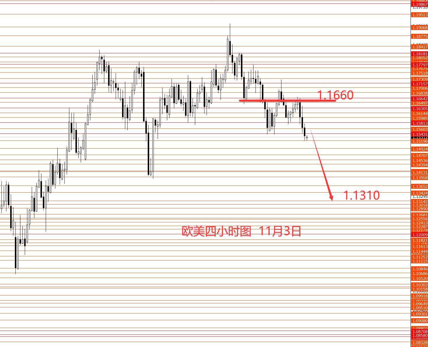 欧元上周正如预期下行至1.1540,中线下跌行情仍在继续。从图形来看,中线继续看跌,目标1.1310附近。本周上方重点关注1.1580和1.1600,1.1600以下继续看跌,但短线具体 能反弹到哪里不确定,也许低位震荡后直接直行,概率也是挺大的。中长线下方重点关注1.1080区域一线,下个波段欧元长线看涨至1.2740附近,但也要等待这个中线波段向下修整完后才可以。本月继续抓中线向下回调行情。今日暂没有具体的操作建议,上周框架思路延用即可,风险自负。