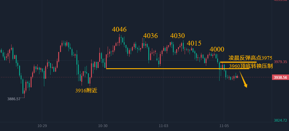 这就像昨日,我们强调3960-4030区间,提示盯住这两个位置,回踩下来守住3960介入短多,拉高之后依托4030防守择高去空,跌破3960之后再去小反弹跟进空,实际盘面价格在欧盘时段首次回落靠近3960支撑后反抽至4000上方,美盘时段承压回落二次下探跌破3960后如期延续下跌。