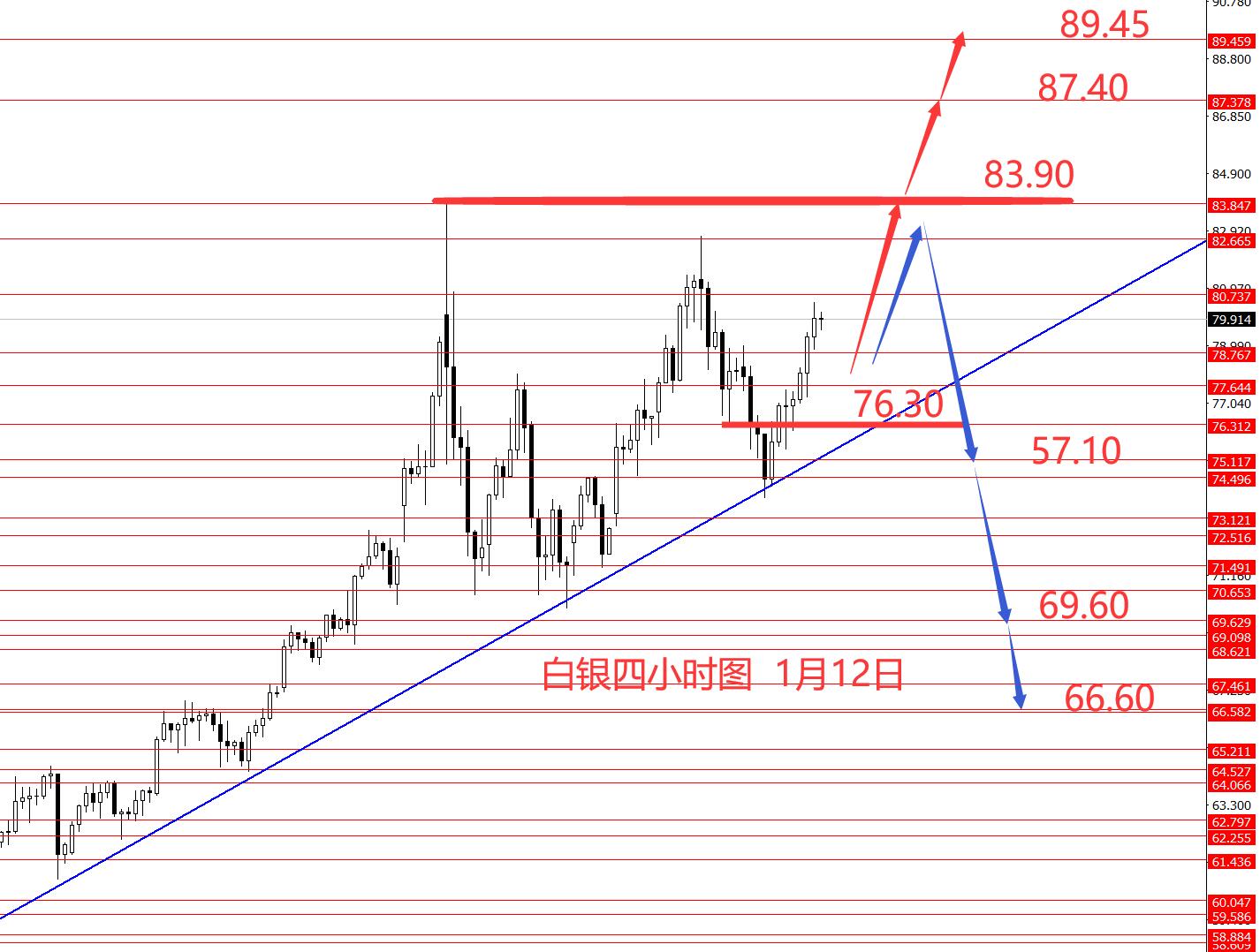 白银上周最高82.70附近承压后,向下回落至74.50强支撑再反弹,从图形来看,仍在单边趋势线上方震荡整理,整体偏强势。本周按高位震荡向上创新高格局操作,76.30以上偏向于看涨,目标看向82.70和83.90,再看向87.40和89.45.备选方案为冲高后回落,上方关注前期高点83.90附近,若在此区域承压大幅回落,再按回调行情操作,下方关注75.10和69.60和66.60.框架思路仅供参考,风险自负。